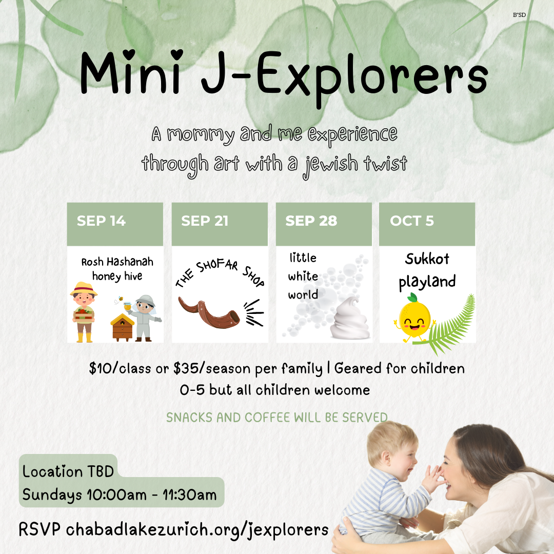 Join our warm community where moms and their little ones share Judaism's joys, and learning. J-Explorers is a special bonding experience – spend quality time with your child and connect with fellow moms!